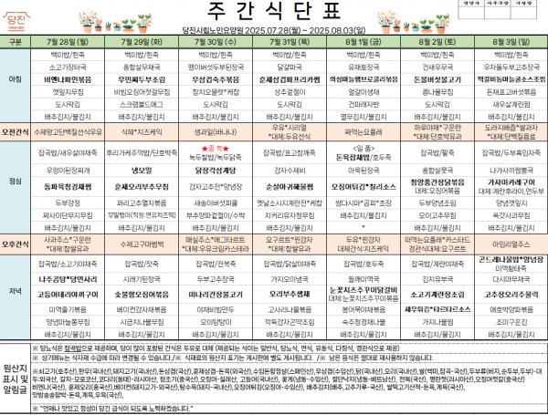 *2025.07.28~2025.08.03* 주간식단표를 게시합니다.