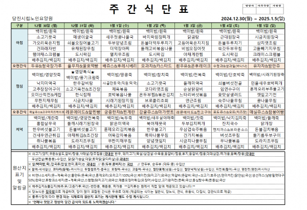 ♠ 2024. 12. 30 ~ 2025. 01. 05 식단표 ♠