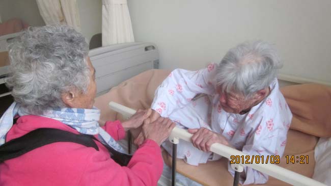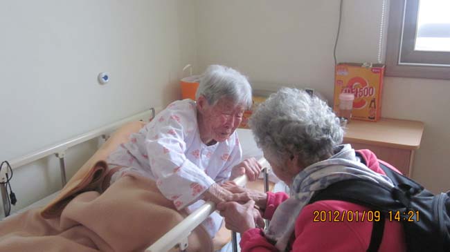 우리어르신과 함께 살던 고향에서 시설에 면회오셔서 기도해드리고 정답게 대화를 나누시는 장면입니다.