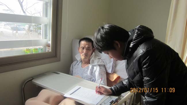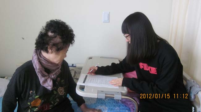 본시설에 봉사활동 온 학생들로 우리어르신들의 수급(보호)자의 만족도 조사 활동사진입니다.
