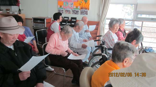 우리어르신 및 직원들께서 법회에 참여하시는 장면입니다.