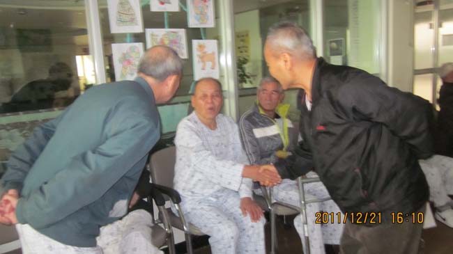 오늘 본시설에 입소하신 어르신을 반갑게 맞이하는 클라이언트 대상자분들의 환영하는 장면입니다.