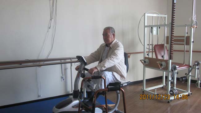 점심드시고 원내산책 후 열심히 스스로 자전거 운동기구을 타고계시는 어르신입니다.