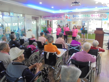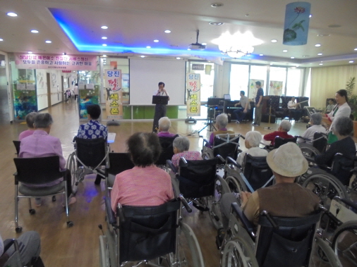 이번달은 당진성당봉성체, 고대제일교회예배, 당진필 색소폰공연, 김춘근 색소폰공연, 당진 원훼밀리공연, 지방선거 거소투표, 나들이, 당진시립합창단 공연, 생신잔치를 했습니다.