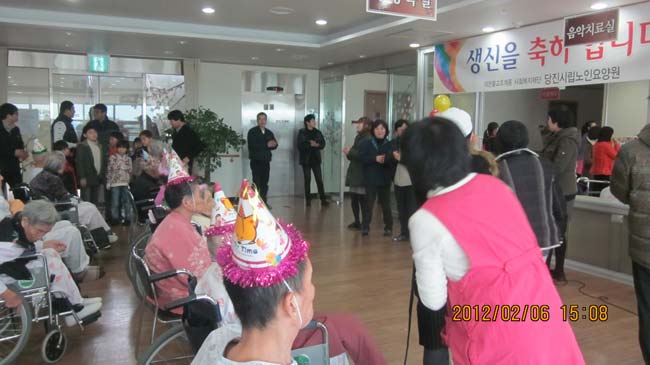 15:00 롯데마트직원30명과 햇빛찬열린교실연계에서20명 자원봉사참여하여 우리어르신들 생신잔치 행사중에 참여하여 노래와 어르신들을 이동후자리정돈및 말벗등등으로 자원 봉사을 하였습니다.