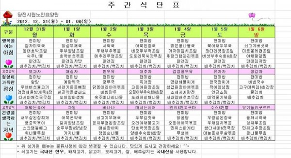 2013년 1월 첫째주 식단표~ 페이지 정보 작성자 운영자 댓글 0건 조회 1,025회 작성일 13-01-01 09:21 본문 1월 1주 식단표 ^^ 목록 글쓰기 이전글2013년 1월 둘째주 식단표~~ 13.01.07 다음글12월 넷째주 식단표입니다. 12.12.24 댓글목록 댓글목록 등록된 댓글이 없습니다.