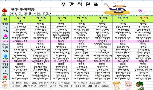 2013년 1월 넷째주 식단표~ 페이지 정보 작성자 운영자 댓글 0건 조회 994회 작성일 13-01-21 14:36 본문 1월 4주차 식단표^^ 목록 글쓰기 이전글1월 다섯째 주 식단표입니다!! 13.02.25 다음글2013년 1월 셋째주 식단표~ 13.01.21 댓글목록 댓글목록 등록된 댓글이 없습니다.