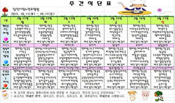 3월 둘째주 식단표입니다. 페이지 정보 작성자 운영자 댓글 0건 조회 968회 작성일 13-03-16 17:00 본문 3월 2주차 식단표~~ 목록 글쓰기 이전글3월 셋째주 식단표입니다~~ 13.03.16 다음글3월 첫째주 식단표 입니다!! 13.03.04 댓글목록 댓글목록 등록된 댓글이 없습니다.