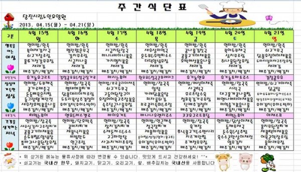 2013년 4월 셋째 주 식단표 입니다~ 페이지 정보 작성자 운영자 댓글 0건 조회 895회 작성일 13-05-31 14:34 본문 4월 3주차~~ ^^ 목록 글쓰기 이전글2013년 4월 넷째 주 식단표입니다~~ 13.05.31 다음글2013년 4월 둘째주 식단표 입니다^^ 13.04.06 댓글목록 댓글목록 등록된 댓글이 없습니다.