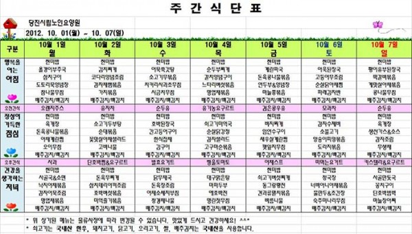 10월 첫째주 식단입니다. 페이지 정보 작성자 운영자 댓글 0건 조회 1,012회 작성일 12-09-28 10:40 본문 10월 첫째주 식단입니다. 목록 글쓰기 이전글10월 둘째주 식단입니다. 12.09.28 다음글9월 넷째주 식단입니다. 12.09.28 댓글목록 댓글목록 등록된 댓글이 없습니다.