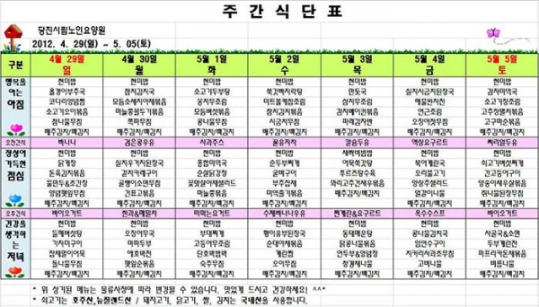 5월 첫째주 식단입니다. 페이지 정보 작성자 운영자 댓글 0건 조회 980회 작성일 12-04-27 14:36 본문 5월 첫째주 식단입니다. 목록 글쓰기 이전글5월 둘째주 식단입니다. 12.05.02 다음글4월 넷째주 식단입니다. 12.04.21 댓글목록 댓글목록 등록된 댓글이 없습니다.