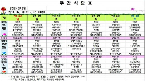 7월 둘째주 식단입니다. 페이지 정보 작성자 운영자 댓글 0건 조회 1,124회 작성일 11-07-11 16:31 본문 7월 둘째주 식단입니다. 목록 글쓰기 이전글7월 셋째주 식단입니다. 11.07.11 다음글7월 첫째주 식단입니다. 11.06.19 댓글목록 댓글목록 등록된 댓글이 없습니다.