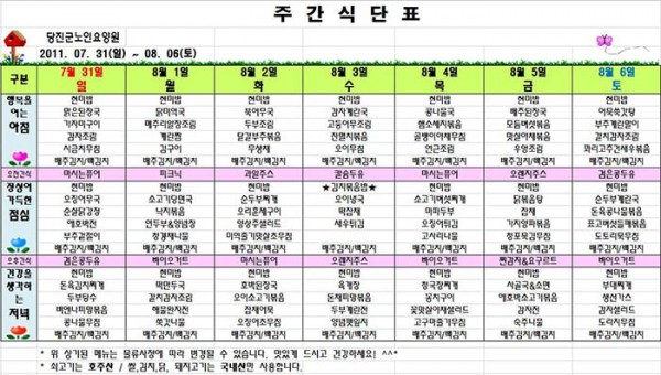 8월 첫째주 식단입니다. 페이지 정보 작성자 운영자 댓글 0건 조회 1,083회 작성일 11-07-28 14:11 본문 8월 첫째주 식단입니다. 목록 글쓰기 이전글8월 둘째주 식단입니다. 11.08.11 다음글7월 다섯째주 식단입니다. 11.07.28 댓글목록 댓글목록 등록된 댓글이 없습니다.