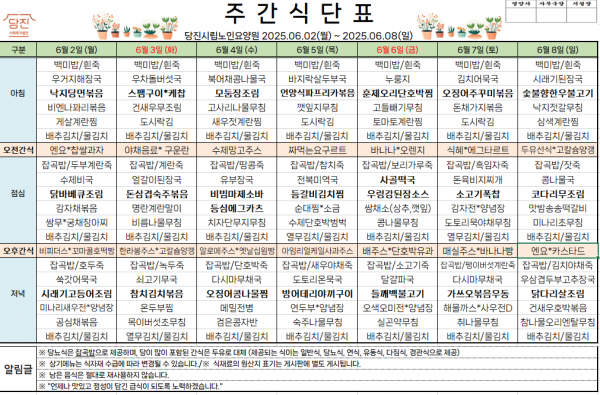*2025.06.02~2025.06.08* 주간식단표를 게시합니다.