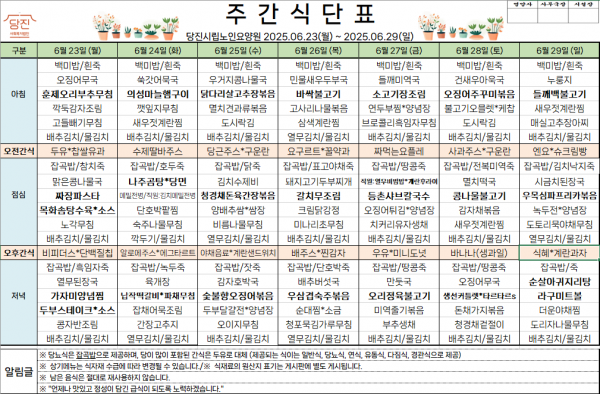 *2025.06.23~2025.06.29* 주간식단표를 게시합니다.