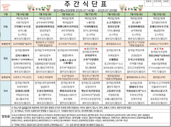 *2025.07.14~2025.07.20* 주간식단표를 게시합니다.