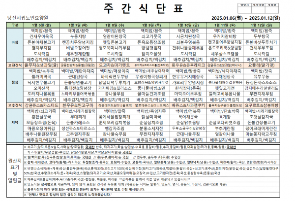 ♠ 2025. 01. 06 ~ 2025. 01. 12 식단표 ♠