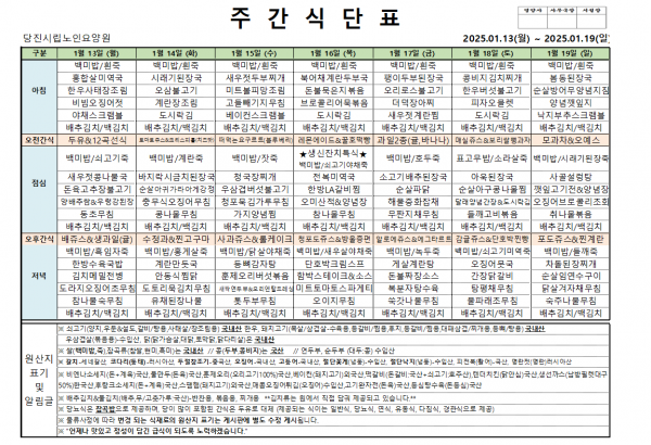 ♠ 2025. 01. 13 ~ 2025. 01. 19 식단표 ♠
