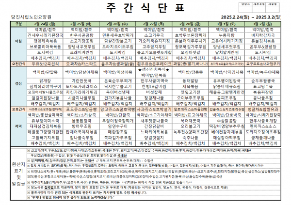 ♠ 2025. 02. 24 ~ 2025. 03. 02 식단표 ♠