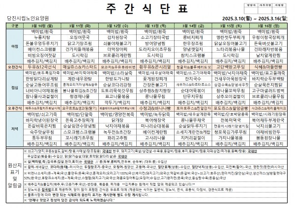 ♠ 2025. 03. 10 ~ 2025. 03. 16 식단표 ♠