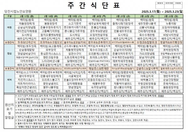 ♠ 2025. 03. 17 ~ 2025. 03. 23 식단표 ♠