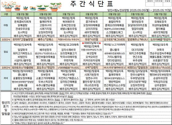 *2025.05.05~2025.05.11 식단표를 게시합니다.