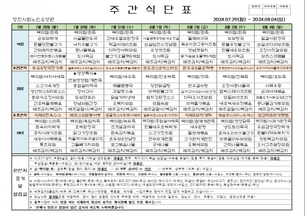 ♠ 2024. 07. 29 ~ 2024. 08. 04 식단표 ♠