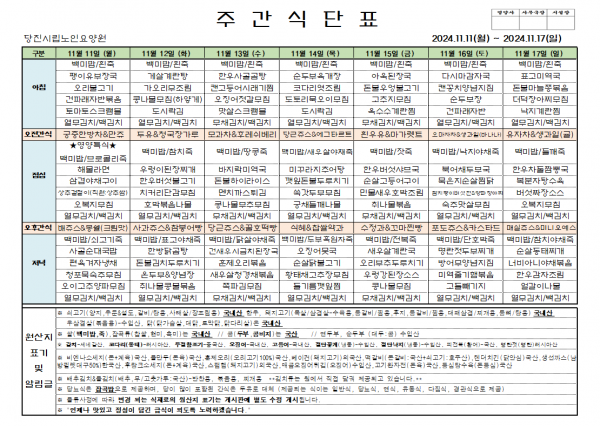 ♠ 2024. 11. 11 ~ 2024. 11. 17 식단표 ♠