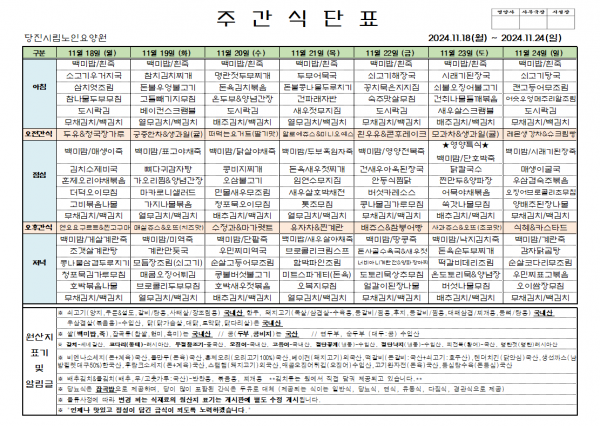 ♠ 2024. 11. 18 ~ 2024. 11. 24 식단표 ♠
