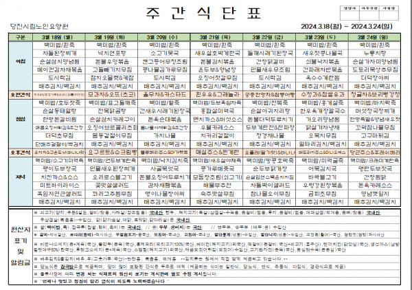 ♠ 2024. 03. 18 ~ 2024. 03. 24 식단표 ♠