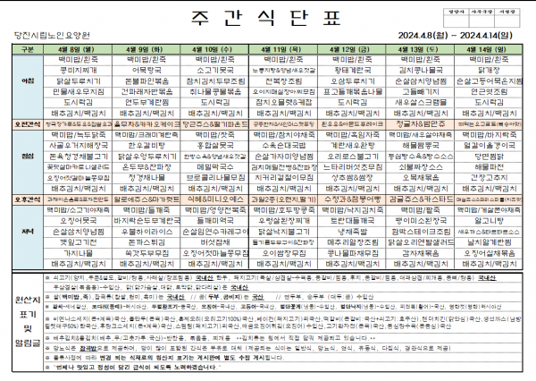 ♠ 2024. 04. 08 ~ 2024. 04. 14 식단표 ♠