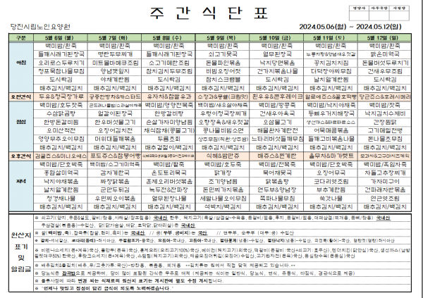 ♠ 2024. 05. 06 ~ 2024. 05. 12 식단표 ♠