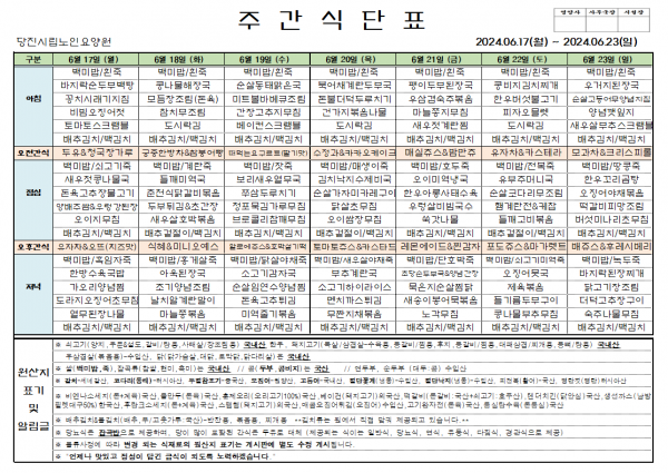 ♠ 2024. 06. 17 ~ 2024. 06. 23 식단표 ♠