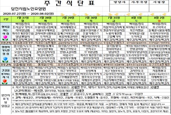♠ 2020. 07. 27 ~ 2020. 08. 02 식단표 ♠