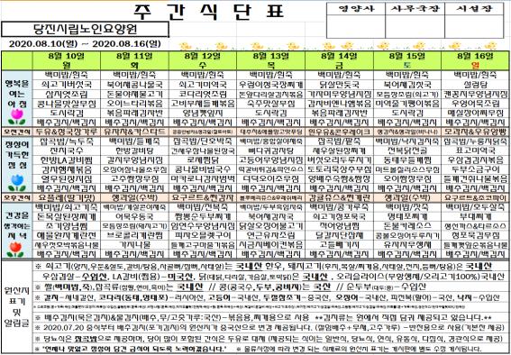 - 다음글♠ 2020. 08. 03 ~ 2020. 08. 09 식단표 ♠ 20.09.03