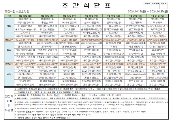 ♠ 2024. 01. 15 ~ 2024. 01. 22 식단표 ♠