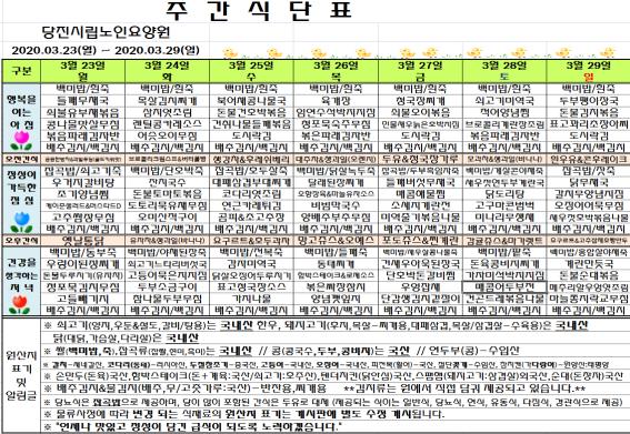 ♠ 2020. 03. 23 ~ 03. 29 식단표 ♠