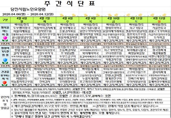 ♠ 2020. 04. 06 ~ 04. 12 식단표 ♠