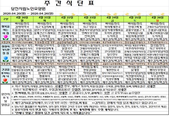 ♤ 2020. 04. 20 ~ 04. 26 식단표 ♤