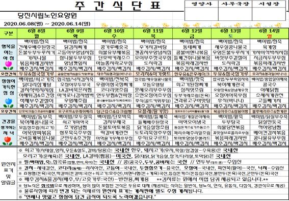 ♠ 2020. 06. 08 ~ 2020. 06. 14 식단표 ♠
