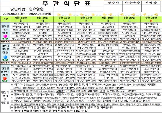 ♤ 2020. 06. 15 ~ 2020. 06. 21 식단표 ♤