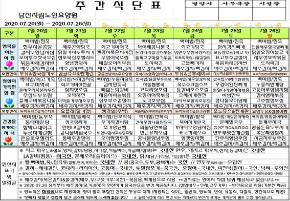 ♤ 2020. 07. 20 ~ 2020. 07. 26 식단표 ♤