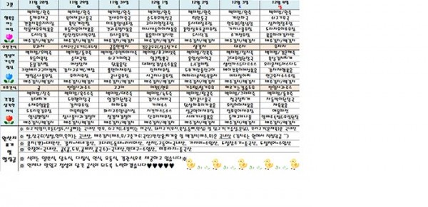 2016년 12월 첫째주 식단표입니다. 페이지 정보 작성자 운영자 댓글 0건 조회 943회 작성일 16-11-29 10:58 본문 12월첫째주 식단표^^ 목록 글쓰기 이전글2017년도 1월 1주차 식단표~♥ 17.01.04 다음글2016년 11월 넷째주 식단표입니다. 16.11.21 댓글목록 댓글목록 등록된 댓글이 없습니다.