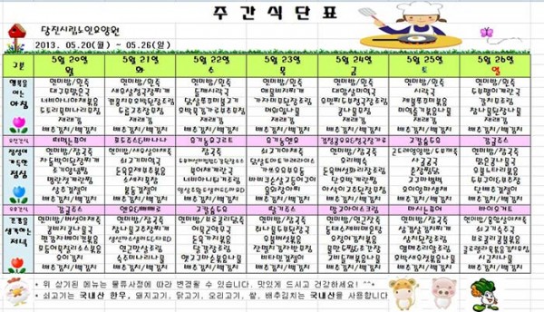 2013년 5월 넷째 주 식단표입니다~~ 페이지 정보 작성자 운영자 댓글 0건 조회 911회 작성일 13-05-31 14:42 본문 5월 4주차 식단표 ^^ 목록 글쓰기 이전글2013년 5월 다섯째 주 식단표입니다~~ 13.05.31 다음글2013년 5월 셋째 주 식단표입니다~~ 13.05.31 댓글목록 댓글목록 등록된 댓글이 없습니다.