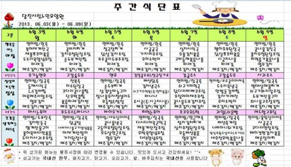 2013년 6월 첫째 주 식단표입니다~~ 페이지 정보 작성자 운영자 댓글 0건 조회 981회 작성일 13-05-31 14:43 본문 6월 1주차 식단표 ^^ 목록 글쓰기 이전글2013년 6월 둘째 주 식단표입니다~ 13.07.17 다음글2013년 5월 다섯째 주 식단표입니다~~ 13.05.31 댓글목록 댓글목록 등록된 댓글이 없습니다.