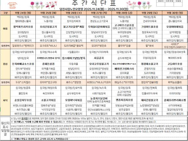 *2025.11.24~2025.11.30* 주간식단표를 게시합니다.