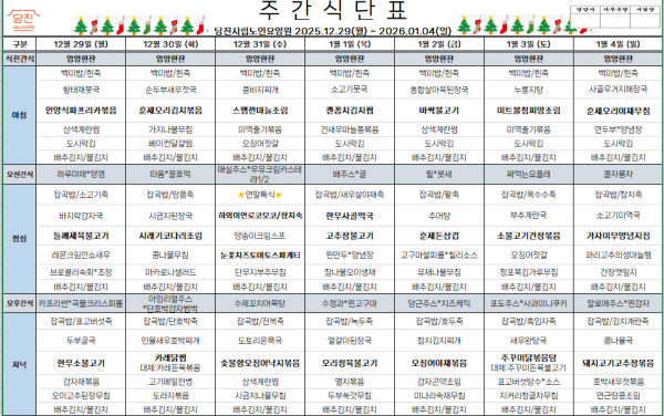 *2025.12.29~2025.01.14* 주간식단표를 게시합니다.